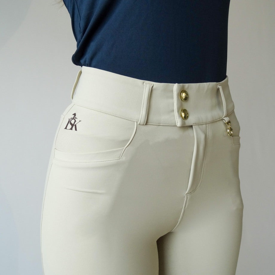 At LESKARD, we believe equestrian fashion should marry timeless elegance with functionality. Our performance breeches feature offset buttons, carefully positioned to the side for maximum comfort and to avoid any discomfort or interference around the belly button area during your ride.
